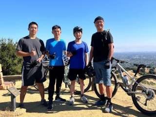 一早大公哥帶我們到 Saratoga 的後山騎登山車,沿路看見非常多來健行與運動的人,還有狐狸穿梭在樹林間,天氣也很好,與之前的早晨不同的是,登頂後雲霧已經完全散去,能看見完整的小鎮。